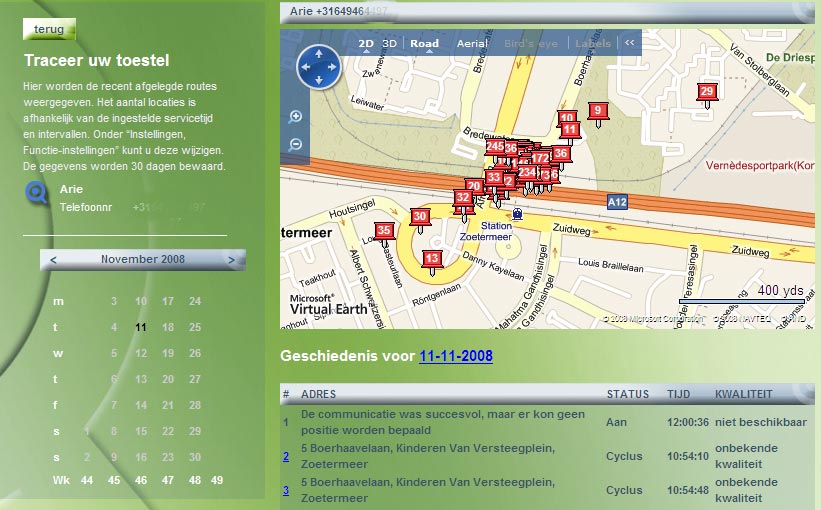 Via het portaal kunt u naast de huidige (real time) locatie ook de geschiedenis locatie ophalen.